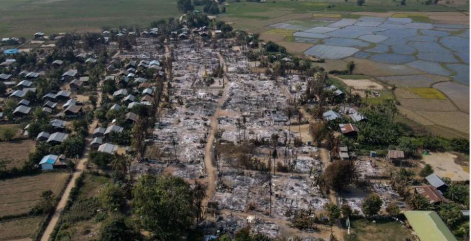 စစ်ကိုင်းတိုင်းတွင် စစ်တပ်မှ မီးရှို့ ထားသည့် ကျေးရွာတရွာ (Credit – Bangkok Post)
