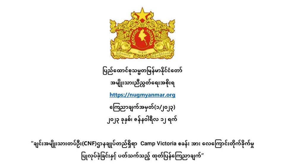 NUG အနေနဲ့ စစ်ကောင်စီရဲ့ လူမဆန်တဲ့ သတ်ဖြတ်မှုတွေကြောင့် ကျဆုံးခဲ့ကြရတဲ့ တိုင်းရင်းသား ပြည်သူတွေအတွက် တရားမျှတမှု ပြန်လည်ရရှိနိုင်ဖို့ ပြည်တွင်းနဲ့ နိုင်ငံတကာ ဥပဒေတွေနဲ့ အညီဆောင်ရွက်သွားမယ်လို့ ထုတ်ပြန်ချက်မှာဖော်ပြထားပါတယ်။