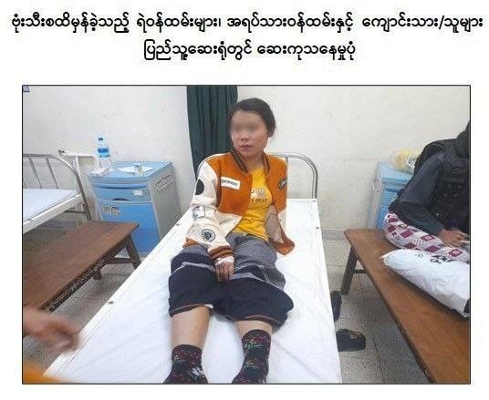 ထိခိုက်ဒဏ်ရာရရှိသူများကို ပြည်သူ့ဆေးရုံမှာ ပို့ဆောင် ကုသပေးနေတယ်လို့ (နကစ)ရဲ့ သတင်းထုတ်ပြန်ချက်မှာ ပါရှိပါတယ်။