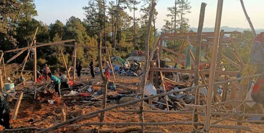 “ညကစွန်တောင်အနီးမှာရှိတဲ့ ရွာတစ်ရွာကို CDF တွေရှိတယ်ဆိုပြီး ဗုံးနှစ်လုံးလာကြဲတာ၊ အမျိုးသား တစ်ယောက်နဲ့ အမျိုးသမီးတစ်ယောက် ထိခိုက်သွားတယ်။ အမျိုးသမီးကတော့ ဒဏ်ရာတော်တော်ပြင်း တယ်ပြောရမယ်။ တင်ပါးတစ်ခြမ်း ပါသွားတယ်တဲ့”ဟု မဇ္ဈိမ၏သတင်းရင်းမြစ်တစ်ဦးက ပြောသည်။