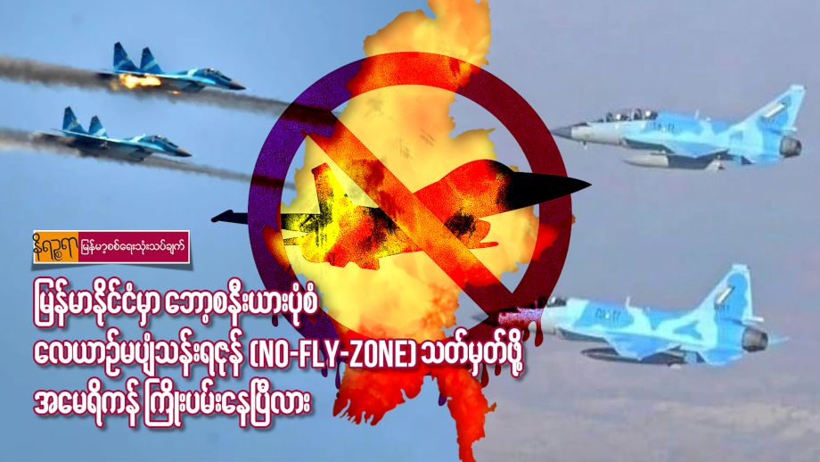 အခုလည်း မြန်မာနိုင်ငံမှာ စစ်တပ်က အရပ်သားပြည်သူတွေအပေါ် လေကြောင်းက ဗုံးကြဲတိုက်ခိုက်နေမှုကို ဟန့်တားဖို့ “လေယာဉ်မပျံသန်းရဇုန်”(no fly zone) တစ်ခု အကောင်အထည်ဖော်ဖို့ အမေရိကန်က ကြိုးစားနေတယ်လို့ ယခင် ဘီဘီစီသတင်းထောက်ဟောင်း ဆူဘီယာဘောမစ်ဆိုသူ ဖက်ဒရယ်သတင်းစာမှာ ရေးသားဖော်ပြလိုက်ပါတယ်။