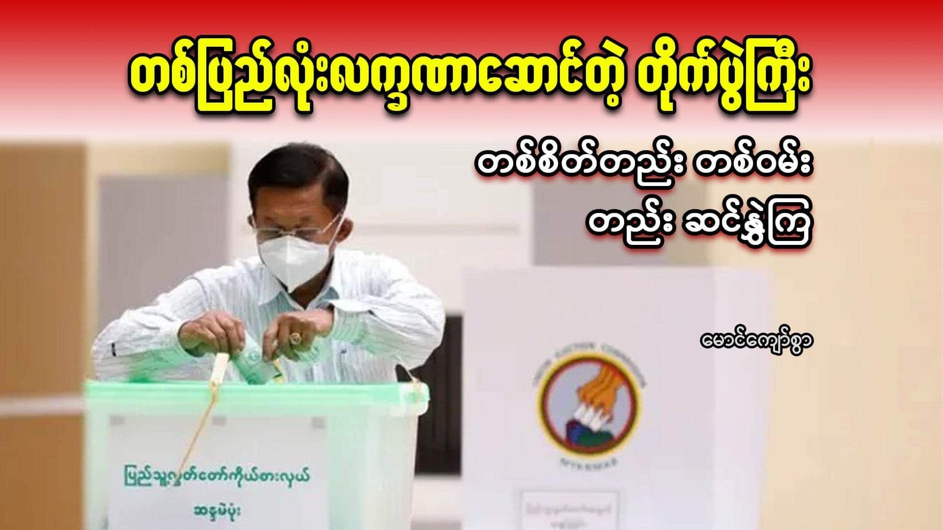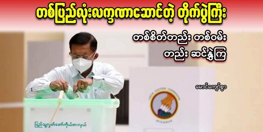 နာကျည်းမှုခံပြင်းမှု၊ ကြေကွဲမှုတွေနဲ့ မာကျောနေတဲ့ နှလုံးသားနဲ့ အသဲကြားကနေ ဘယ်လိုမဲတစ်ပြားကို ဘယ်လိုစိတ် ထား၊ ဘယ်လိုခြေလှမ်းမျိုးနဲ့ သွားပေးကြမှာလဲ။ ဓမ္မနဲ့အဓမ္မအကြားမှာ နောက်တစ်ကြိမ် ထပ်မံပြီး စည်းသားကြရပါလိမ့်အုံးမယ်။ ကျနော်တို့ တကယ်တမ်းလိုလားတဲ့၊ စစ်မှန်တဲ့ ပါတီစုံဒီမိုကရေစီစနစ်နဲ့ စစ်အာဏာရှင်စနစ်ကို ထပ်မံပြီး ပြတ်ပြတ်သားသား ရန်/ငါးစည်းသားကြရပါလိမ့်အုံးမယ်။