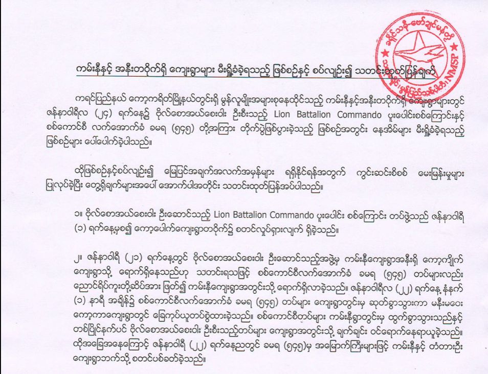 ကမ်းနီတွင် ဖြစ်ပွားခဲ့သည့် အခြေအနေကဲ့သို့ ထပ်မံပေါ်ပေါက်ခဲ့ပါက ဒေသတွင်းရှိ မွန်ပြည်သူလူထုတို့ အနေဖြင့် မိမိတို့ဒေသတွင်း လုံခြုံရေးအစီအမံများအား ကြိုတင်ပြင်ဆင်ထားနိုင်ရန် အတွက် မွန်ပြည်သစ်ပါတီနှင့် ချိတ်ဆက်ဆောင်ရွက်ထားရန် မွန်ပြည်သစ်ပါတီက အသိပေး ထုတ်ပြန်ထားသည်။