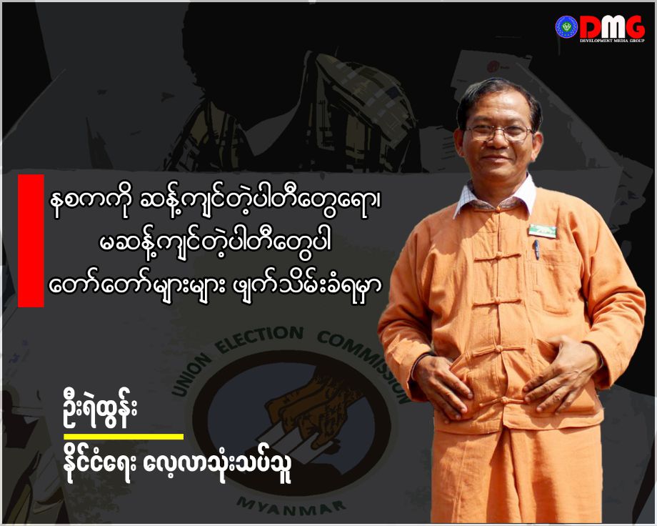 UYT - တိုင်းရင်းသားပါတီတွေထဲမှာလည်း ပြည်နယ်တစ်ခုလုံးကို လွှမ်းခြုံပြီးတော့ စည်းရုံးထားနိုင်တဲ့ ပါတီတွေကတော့ ပြဿနာမရှိဘူး။ တိုင်းရင်းသား လူမျိုးစုငယ်တွေရဲ့ ပါတီအတွက်ကတော့ နည်းနည်းတော့ ခက်ခဲမယ်။ ဒါပေမဲ့ ပြည်ထောင်စုတစ်ခုလုံးမှာ ယှဉ်ပြိုင်မယ့်ပါတီတွေ၊ ဗမာလူမျိုးနေထိုင်တဲ့ ဒေသကိုအာရုံစိုက်ပြီး စည်းရုံးမယ့်ပါတီတွေရဲ့ အခက်အခဲလောက်တော့ မကြီးဘူးပေါ့နော်။ သူတို့လည်း အခက်အခဲ ရှိသင့်သလောက် ရှိမယ်။ ဒါပေမဲ့ သူတို့ကတော့ တပြည်လုံးပြိုင်ဖို့ သတ်မှတ်ထားတဲ့ သတ်မှတ်ချက်လောက်တော့ မပြင်းထန်ဘူးလို့ ယူဆပါတယ်။