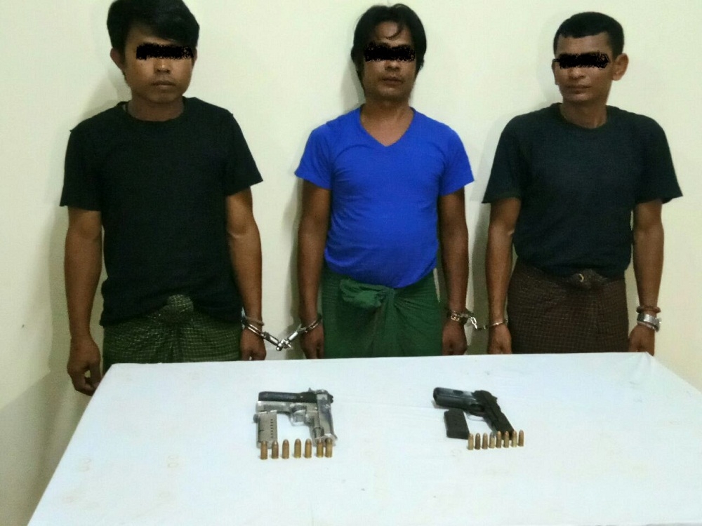 အဆောင်း မောင်းနှင်လာခဲ့သော ဆိုင်ကယ်တူးဘောက်(စ်)အတွင်းမှ ပစ္စတိုအမဲရောင်သေနတ်(၁)လက်၊ ၄င်းကျည်အိမ်(၁)ခု၊ ကျည်အိမ်အတွင်း ၉ မမ ပစ္စတိုကျည်(၈)တောင့်နှင့် ဗညားဋ္ဌေးမှ SMIT & WESSON အမျိုးအစား စတီးလ်ရောင်ပစ္စတို(၁)လက်၊ ကျည်အိမ်(၁)ခု၊ ကျည်(၇)တောင့်တို့အား ရှာဖွေတွေ့ရှိ သိမ်းဆည်းရမိခဲ့သည်ဟု သိရသည်။