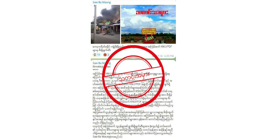 ကော့ကရိတ်မြို့နယ်ထဲက ကမ်းနီကျေးရွာကို KNU နဲ့ PDF တွေက မီးရှို့ခဲ့တဲ့အပြင် မီးငြိမ်းသတ်ဖို့ ကြိုးစားတဲ့ ဒေသခံတွေကိုလည်း သေနတ်နဲ့ လိုက်ပစ်တယ်ဆိုတဲ့ သတင်းအမှားတစ်ခုကို Saw Ba Maung ဆိုတဲ့ တယ်လီ ဂရမ် ချယ်နယ်က ဇန်နဝါရီလ ၂၄ ရက်နေ့က တင်ထားပါတယ်။