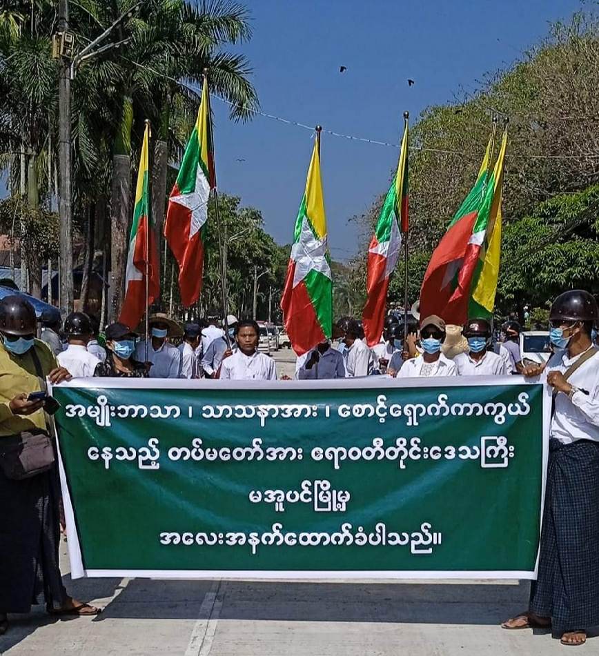 မြို့နေပြည်သူများကိုသာ စစ်ကောင်စီ၏ တပ်မတော်ထောက်ခံပွဲကို (မပျက်မကွက်) တက်ကြရန် ဖိအားပေးခံရ ခြင်း မဟုတ်ဘဲ အုပ်ချုပ်ရေး အဖွဲ့ဝင်များကိုလည်း နယ်မြေတစ်ခုလျှင် လူ ၁၀ ဦး မဖြစ်မနေ စုဆောင်းပေးရ မည်ဟု ညွှန်ကြားထားကြောင်း အုပ်ချုပ်ရေးအဖွဲ့နှင့် နီးစပ်သူတစ်ဦး က ပြောသည်။