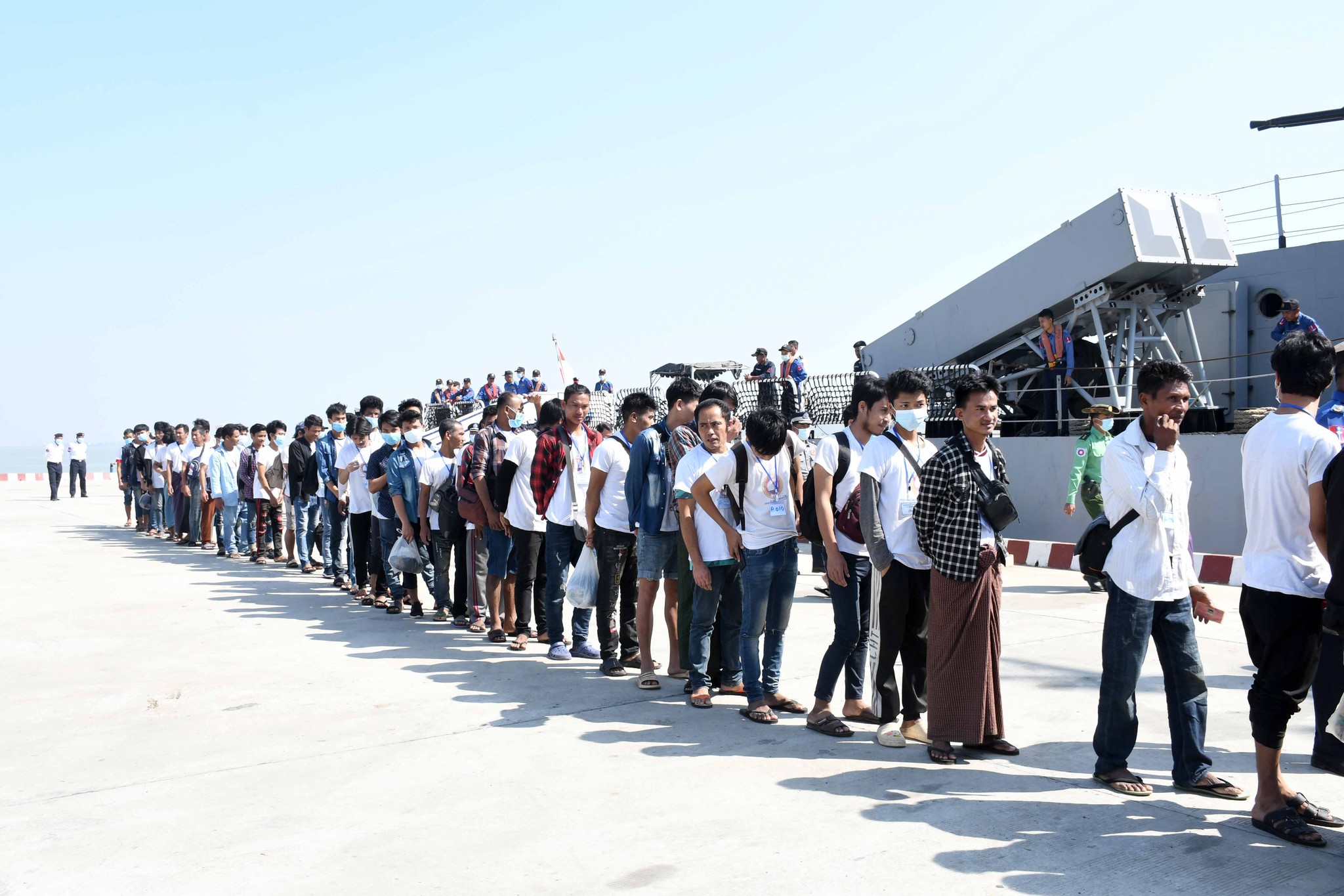 စစ်တွေ ရွှေမင်းဂံဆိပ်ကမ်းသို့ပြန်လည်ရောက်ရှိလာကြသည့် နေရပ်ပြန်လာသူများကို ရခိုင်ပြည်နယ်စစ်ကောင်စီ ဝန်ကြီးချုပ် ဦးထိန်လင်းအပါအဝင် အနောက်ပိုင်းတိုင်း စစ်ဌာနချုပ် တိုင်းမှူးနှင့် ပြည်နယ်အစိုးရအဖွဲ့ဝင်များ၊ ဌာနဆိုင်ရာတာဝန်ရှိသူများ သွားရောက်ကြိုဆို တွေ့ဆုံခဲ့ကြသည်ဟု သိရသည်။