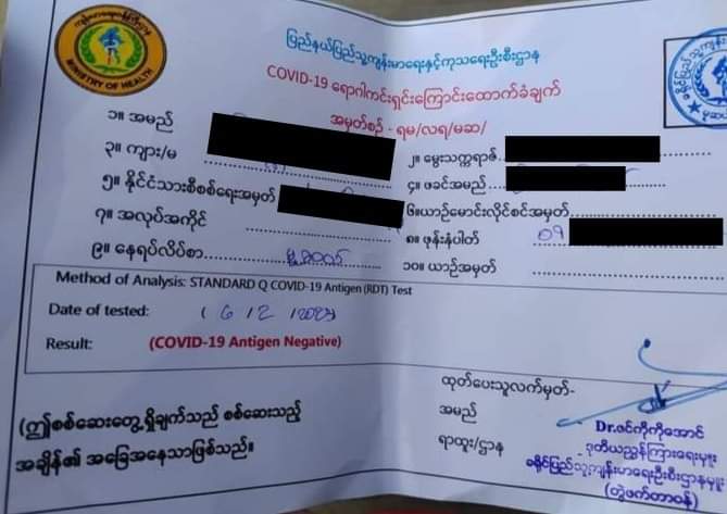 ထို့ကြောင့် တရုတ်-မြန်မာနယ်စပ်ရှိ ရွှေ့ပြောင်းအလုပ်သမားများနေဖြင့် မြန်မာဘက်ခြမ်းတွင် COVID- 19 စစ် ဆေးခအတွက် ကျပ်ငွေ ၁၅၀၀၀ နှင့် မြန်မာဘက်ခြမ်းမှ အဝင်အထွက်တံဆိပ်တုံးထုခ ကျပ် ၁၀၀၀၊ စုစုပေါင်း ကျပ် ၁၆၀၀၀ ပေးဆောင်နေရသည်ဟု ဆိုသည်။