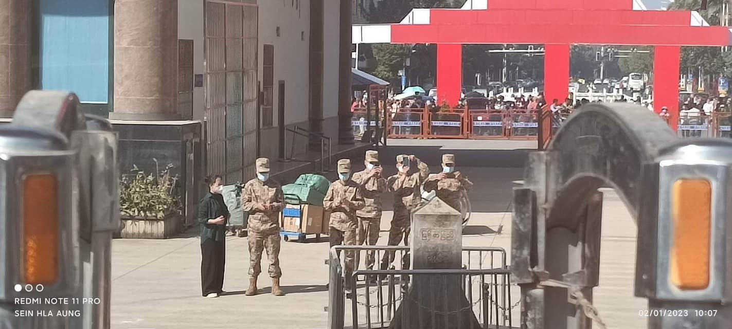 မူဆယ်မြို့ရှိ နန်းတော်ဂိတ် (အလည်) ပေါက်တွင် တရုတ်နိုင်ငံဘက်ခြမ်းသို့ သွားရန်အတွက် (Boarder Pass-BP) စာအုပ်အနီ-နိုင်ငံကူးလက်မှတ်လုပ်ချိန်တွင် COVID-19 ကင်းစင်ကြောင်း ဆေးစစ်ရခြင်း ဖြစ်သည်။