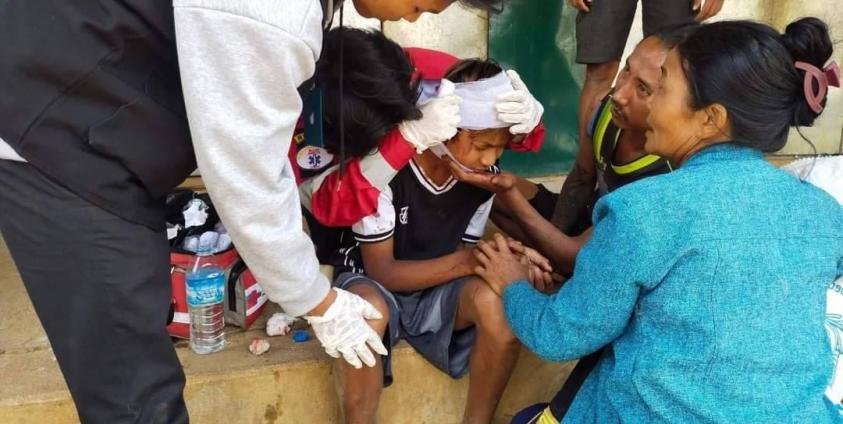 လက်နက်ကြီးစ ထိခိုက်ဒဏ်ရာရသူတွေဟာ အသက် ၁၉နှစ်အရွယ် မဘီဗျားနာနဲ့ အသက် ၁၃ နှစ်အရွယ် မောင်လမင်းမောင်မောင် တို့ဖြစ်ပါတယ်။ ထိခိုက်ဒဏ်ရာရရှိသူတွေဟာ လက်ရှိမှာ လွိုင်ကော်ဆေးရုံကြီးမှာ ကုသမှုခံယူနေပြီး အသက်အန္တာရာယ်စိုးရိမ်ရတဲ့ အခြေအနေတော့ မရှိဘူးလို့ သိရပါတယ်။