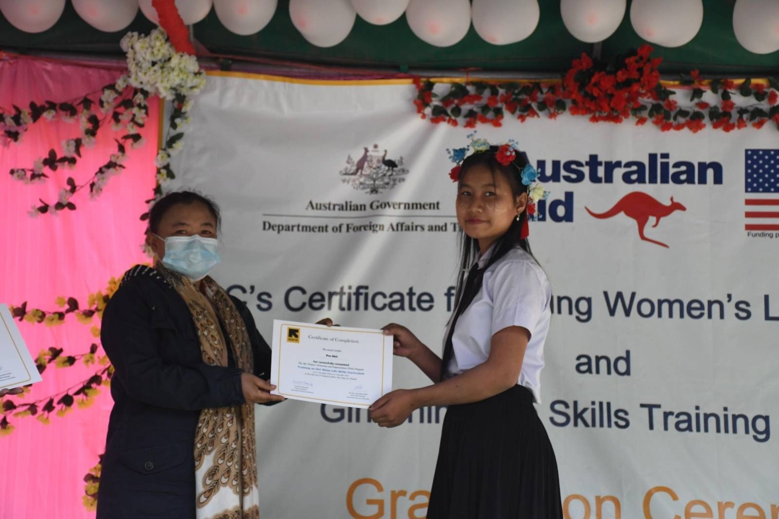 အသက် ၁၈ နှစ်အောက် အမျိုးသမီးတွေကို အဓိက သင်ကြားပေးခဲ့တဲ့ Girl shine Life skills training course မှာတော့ ၁၁ လသာ ဖွင့်လှစ်ခဲ့ပြီး တစ်လမှာ နှစ်ရက် သင်ကြားပေးခဲ့တယ်လို့ ဆိုပါတယ်။ ၂၀၂၂ခုနှစ်မှာ အဲဒီသင်တန်း တက်ရောက် ပြီးစီးသွားတဲ့ သင်တန်းသူ ၂၂ ယောက်နဲ့ ၂၀၂၀ ခုနှစ်က သင်တန်းတက်ရောက်ခဲ့ပြီးသူ ၄၇ ယောက်ကိုလည်း သင်တန်းဆင်းလက်မှတ်ပေးအပ်ခဲ့တယ်လို့ ဆိုပါတယ်။