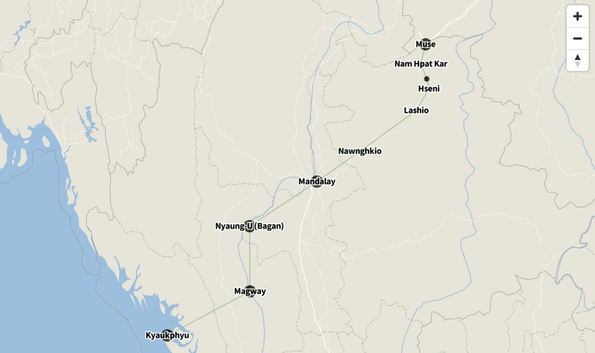 အခြားနေရာများတွင် အပြောင်းအလဲ မရှိသော်လည်း မကွေး နှင့် မန္တလေးအကြားတွင် ပုဂံရှေးဟောင်းနယ်မြေ ညောင်ဦးမြို့နယ်ကို ဖြတ်သန်းသွားမည့် လမ်းကြောင်းဖြစ်သည်။