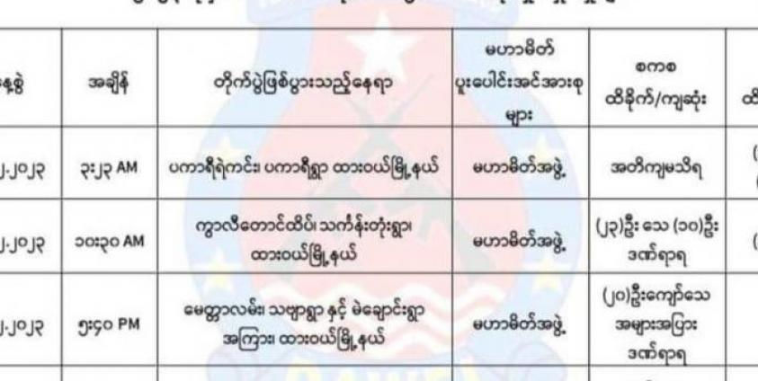 ထားဝယ်၊ သရက်ချောင်း၊ လောင်းလုံး၊ ရေဖြူမြို့နယ်တို့ပါဝင်သော ထားဝယ်ခရိုင်အတွင်း တိုက်ပွဲအခြေအနေကို ယနေ့မတ်လ (၁)ရက်နံနက်တွင် ထုတ်ပြန်ထားခြင်းဖြစ်သည်။