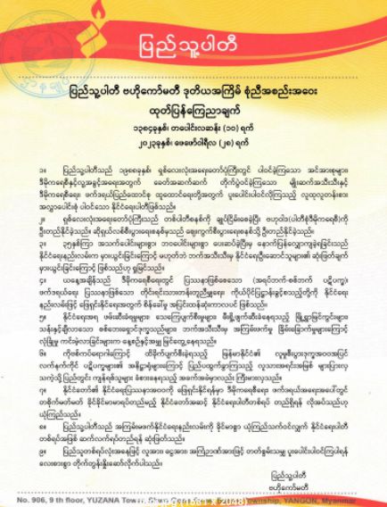 နိုင်ငံရေးပါတီအဖြစ် ဆက်လက်ရပ်တည်မယ်လို့ ပြည်သူ့ပါတီကြေညာ