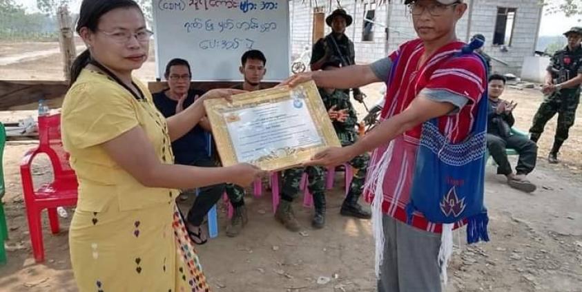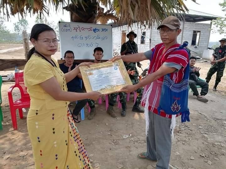 ကရင်အမျိုးသားအစည်းအရုံး-KNU၊ ဒူးပလာယာခရိုင်၊ နို့တကော (ကြာအင်းဆိပ်ကြီး)မြို့နယ်အတွင်း ဝင်ရောက်လာသော CDM (အာဏာဖီဆန်ရေးလှုပ်ရှားမှု)ရဲနှင့် တပ်မတော်သားများကို အမျိုးသားညီ ညွတ်ရေးအစိုးရ (NUG)မှ ပေးပို့လာသည့် ဂုဏ်ပြုလက်မှတ်များအား ယမန်နေ့ မတ်လ ၆ရက်တွင် ကြာအင်းဆိပ်ကြီးမြို့နယ် ပြည်သူ့အုပ်ချုပ်ရေးအဖွဲ့က ပေးအပ်ချီးမြှင့်ခဲ့ကြောင်း သိရသည်။