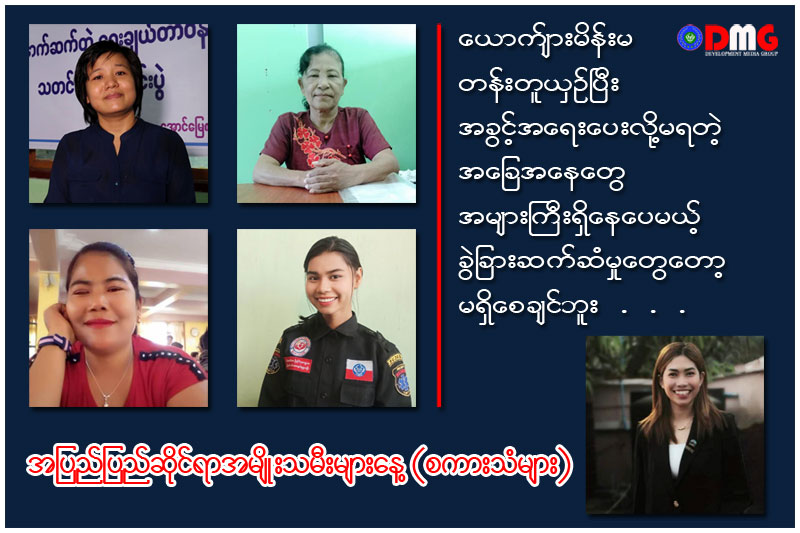 တရားဥပဒေစိုးမိုးမှု အားနည်းချက်အောက်တွင် အမျိုးသမီးများ ရင်ဆိုင်ကြုံတွေ့နေရမှုများ၊ ကျား/မ တန်းတူမညီမျှမှုများနှင့်ပတ်သက်၍ ယနေ့ မတ်လ ၈ ရက်နေ့တွင် ကျရောက်သည့် အပြည်ပြည်ဆိုင်ရာ အမျိုးသမီးများနေ့တွင် ရခိုင်ပြည်အတွင်းရှိ နယ်ပယ်အသီးသီးမှ အမျိုးသမီးများ၏အသံကို DMG မှ မေးမြန်းတင်ပြလိုက်သည်။