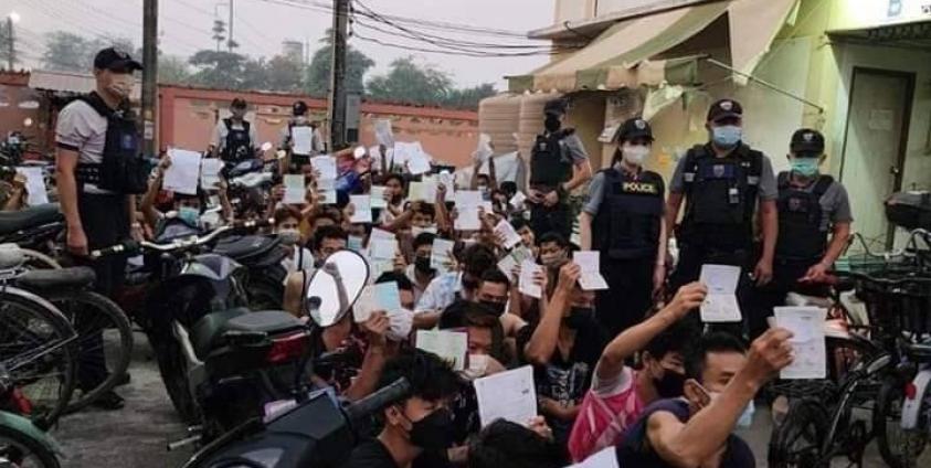 ယမန်နေ့ (မတ်လ ၉ ရက်) နံနက်ပိုင်းအချိန် မြန်မာလုပ်သားများ နေထိုင်သည့် အိမ်ငှားရမ်းတိုက်ခန်း တစ်နေရာကို ထိုင်းဝန်ကြီးဌာန ရဲတပ်ဖွဲ့များ ဝင်ရောက်စစ်ဆေးခဲ့ပြီး ဧည့်စာရင်း မတိုင်ကြားသည့် မြန်မာလုပ်သား ၆၆ ဦးကို ဖမ်းဆီးရမိခဲ့ကြောင်း ထိုင်းရောက်မြန်မာလုပ်သား အမျိုးသားတစ်ဦးက ပြောသည်။