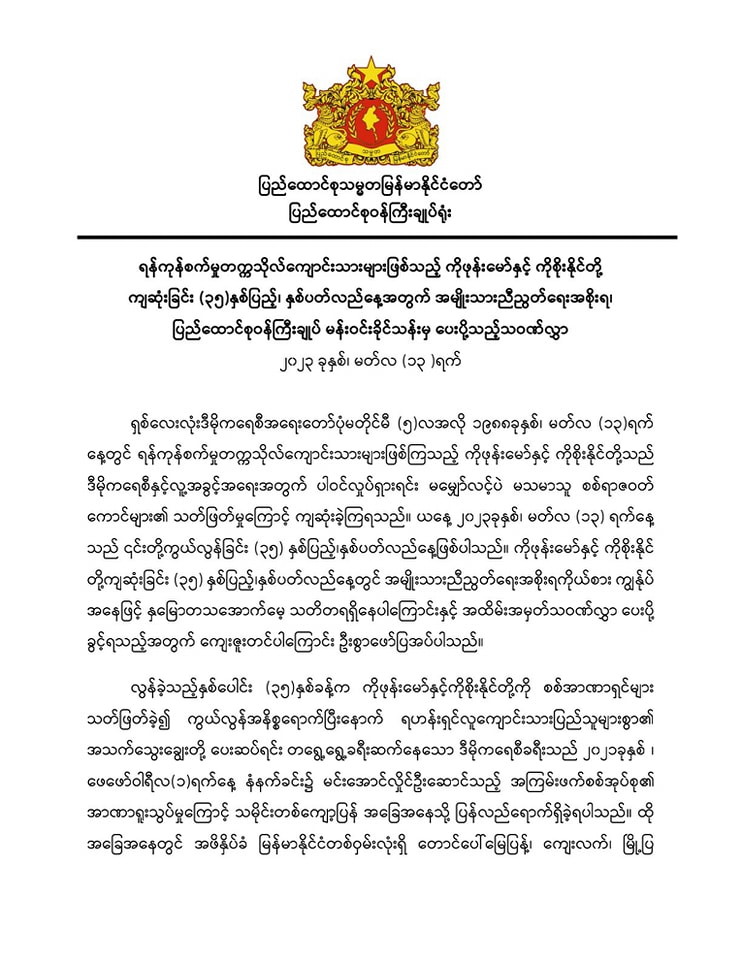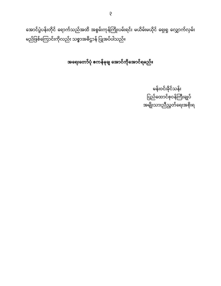 လွန်ခဲ့တဲ့ (၃၅) နှစ်က ကိုဖုန်းမော်နဲ့ ကိုစိုးနိုင်တို့ကို စစ်အာဏာရှင်တွေ သတ်ဖြတ်ခဲ့ပြီးနောက် ရဟန်ရှင်လူ ကျောင်းသားပြည်သူတွေ တရွေ့ရွေ့ခရီးဆက်နေတဲ့ ဒီမိုကရေစီခရီးဟာ ၂၀၂၁ ခုနှစ် ဖေဖော်ဝါရီလ(၁) ရက်နေ့မှာ စစ်ကောင်စီရဲ့ အာဏာရူးသွပ်မှုကြောင့် သမိုင်းတကျော့ပြန် အခြေ အနေပြန်ရောက်ခဲ့ရတယ်လို့ သဝဏ်လွှာမှာဖော်ပြထားပါတယ်။