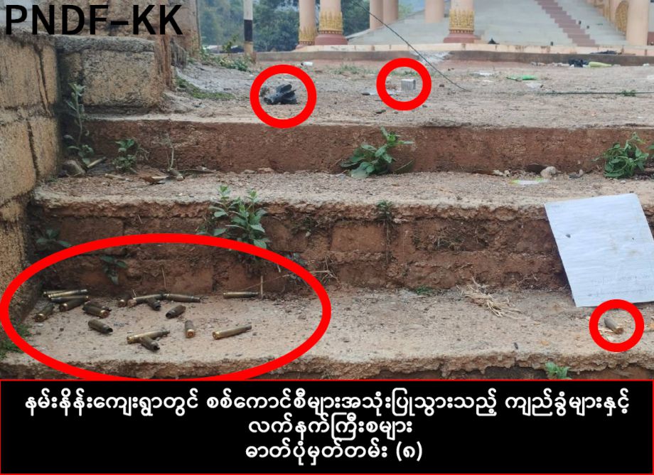 ထို့အတူ ပအိုဝ်းတိုင်းရင်းသားပြည်သူများနှင့်ဘုန်းကြီးများကို သတ်ဖြတ်ခြင်းသည် စစ်ကောင်စီတပ်က သတ်ဖြတ် ခြင်းသာဖြစ်ကြောင်း ဘုန်းကြီးကျောင်းဝင်းထဲရှိ စစ်ကောင်စီတပ်၏ ကျည်အခွံများနှင့် အသုံး အဆောင် ပစ္စည်းများကို ကရင်နီအမျိုးသားကာကွယ်ရေးတပ်မတော် (Karenni Nationalities Defense Force) နှင့် ပအိုဝ်းတိုင်းရင်းသားကာကွယ်ရေးတပ်ဖွဲ့(ခမ်းကောင်) PNDF-KK က ၎င်းတို့ လူမှုကွန်ရက်စာမျက်နှာပေါ်တွင် ထုတ်ပြန်ထားသည်။