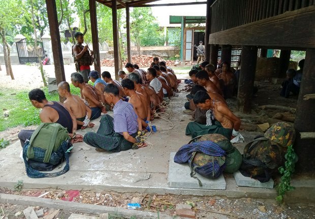 ၂၀၂၂ ခုနှစ်၊ မေလ ၁ဝ ရက်နေ့က စစ်ကိုင်းတိုင်းဒေသကြီးအတွင်း အရပ်သား ၃၀ ခန့်ကို လက်ပြန်ကြိုးတုပ်ပြီး ဖမ်းဆီထားစဉ်။ ဓာတ်ပုံ - RFA