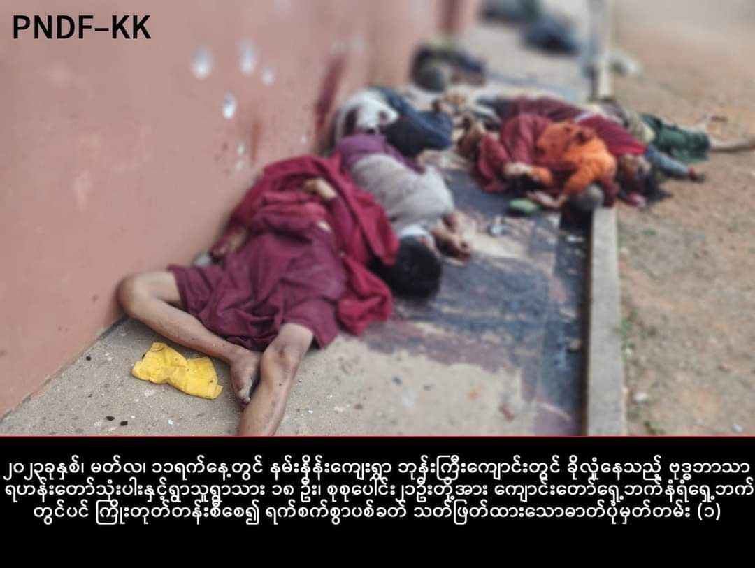 ပြီးခဲသည့် မတ်လ ၁၃ ရက်နေ့က စစ်ကောင်စီ လက်အောက်ခံ သတင်းစာများနှင့် ရုပ်မြင်သံကြားများတွင် နန်း နိန်ကျေးရွာတွင် ဖြစ်ပွားခဲ့သည့် သံဃာတော်များ အပါအဝင် လူအစုလိုက် အပြုံလိုက် သတ်ဖြတ်ခံရမှုသည် ကရင်နီလက်ကိုင် အဖွဲ့အစည်းများက လုပ်ဆောင်ခဲ့ခြင်းဖြစ်သည်ဟု ဗိုလ်ချုပ်ဇော်မင်းထွန်းက ဝါဒဖြန့် ပြောဆို ထားသည်။