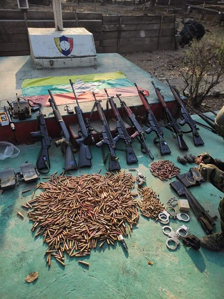 စခန်းထဲမှ လက်နက်ငယ် မျိုးစုံ ၁၅ လက်၊ ကျည်မျိုးစုံ ၂ တောင့်၊ BA – 63 ရိုင်ဖယ် ကျည်ကကတ် ၁၂ ကတ်၊ BA – 94 ကျည်ကတ် ၂ ကတ်၊ AK – 47 ကျည်ကတ် ၂ ကတ်၊ ရှေ့ထွက်မိုင်း ၂ လုံး၊ လက်ပစ်ဗုံး ၃ လုံးတို့ကို သိမ်းဆည်းရမိခဲ့ကြောင်း NLA က ထုတ်ပြန်ချက်တွင် ဖော်ပြထားသည်။