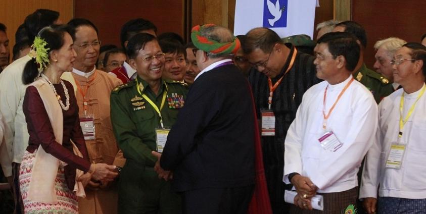 တပ်မတော်ကာကွယ်ရေးဦးစီးချုပ်၊ ဗိုလ်ချုပ်မှူးကြီး မင်းအောင်လှိုင်ကလည်း “တိုင်းရင်းသားညီအစ်ကိုမောင်နှမများရဲ့ အခွင့်အရေးကို အပြည့်အဝ အာမခံချက်ပေးထားတဲ့ တစ်နိုင်ငံလုံး ပစ်ခတ်တိုက်ခိုက်မှု ရပ်စဲရေးသဘောတူစာချုပ်ကို ပစ်ခတ်တိုက်ခိုက်မှုရပ်စဲရေးဆိုတဲ့ ဘောင်ထဲကသာ မကြည့်ဘဲ ပိုမိုကျယ်ပြန့်တဲ့အမြင်နဲ့ ကြည့်ပြီး အချိန်မဆိုင်းဘဲ အားလုံးပါဝင်ဆောင်ရွက်သွားကြပါ” ဟု ယနေ့ အခမ်းအနားမိန့်ခွန်းတွင် နိဂုံးချုပ်အနေဖြင့် တိုက်တွန်းပြောဆိုသည်။