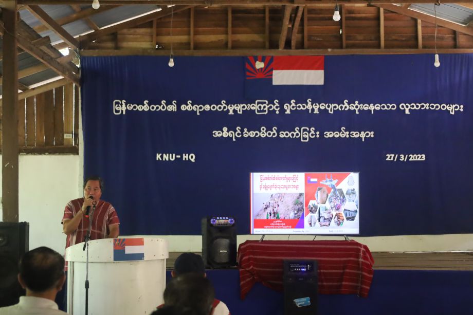 ယနေ့ ပြုလုပ်ခဲ့သည့် အစီရင်ခံစာ မိတ်ဆက်ပွဲကို KNU၏ ဌာနချုပ် တစ်နေရာတွင် ပြုလုပ်ခဲ့ပြီး သက်ဆိုင်ရာ KNU ဗဟိုခေါင်းဆောင်များဖြစ်သည့် KNU တွဲဖက် အထွေထွေအတွင်းရေးမှူး(၁) ပဒို စောဆဲပွယ်၊ တွဲဖက်အထွေထွေအတွင်းရေးမှူး(၂) ပဒိုစောလှထွန်း နှင့် အခြားဗဟိုခေါင်းဆောင်များ၊ တပ်ပိုင်းဆိုင်ရာ ခေါင်းဆောင်များ၊ ကျောင်းသား လူငယ်များ နှင့် သတင်းမီဒီယာတချို့ ပါဝင်တက်ရောက်ခဲ့ကြပြီး အစီရင်ခံစာပါ အချက်အလက်များကို ပြောကြားရှင်းလင်းခြင်း၊ မှတ်တမ်းရုပ်ရှင်များ၊ လူ့အခွင့်အရေးချိုးဖောက်မှု မှတ်တမ်းဓါတ်ပုံများကို ပြသခဲ့ကာ လူ့အခွင့်အရေးချိုးဖောက်မှုခံစားနေရသည့် ပြည်သူများအတွက် တစ်မိနစ် ငြိမ်သက် ဆုဆောင်ပေးခြင်းလည်း ပြုလုပ်ခဲ့သည်။
