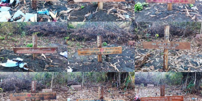 အရပ်သားပြည်သူ ၉ ဦးသတ်ဖြတ်ခံရသည့် တစ်လပြည့် ဖေဖော်ဝါရီလ ၂၄ ရက်နေ့တွင် မိသားစုဝင်များနှင့် အမှုမှန်ပေါ်ပေါက်ရေး အဖွဲ့တို့က သတ်ဖြတ်မြုပ်နှံ့ထားသော ရုပ်အလောင်းများ သွားရောက်ထုတ်ယူကာ မြေမြှုပ်သဂြိုလ်ပေးခဲ့ကြသည်။