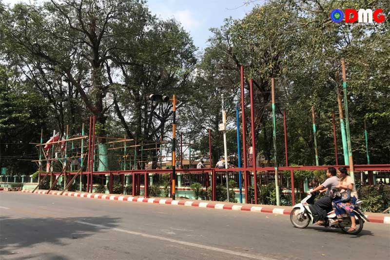 “အစိုးရက ပိုက်ဆံ ဘယ်လောက်အကုန်ကျခံပြီး ဆောက်လုပ်နေတာတော့ မသိဘူး။ မဏ္ဍပ်ကတော့ အရင်နှစ်နဲ့အတူတူပဲ။ ရခိုင်အဆိုတော်တွေနဲ့ ပျော်ပျော်ပါးပါး ကျင်းပမယ်။ ပြီးရင် အရင်နှစ်ကလို လမ်းလျှောက်သင်္ကြန်ကိုလည်း ကမ်းနားလမ်း အာရီယန်ဆိုင်ကနေ တြိဂံခွဆုံအထိ လုပ်မယ်လို့ ပြောတယ်”ဟု မဏ္ဍပ်ဆောက်လုပ်နေသည့် တာဝန်ရှိသူတစ်ဦးက ဆိုသည်။