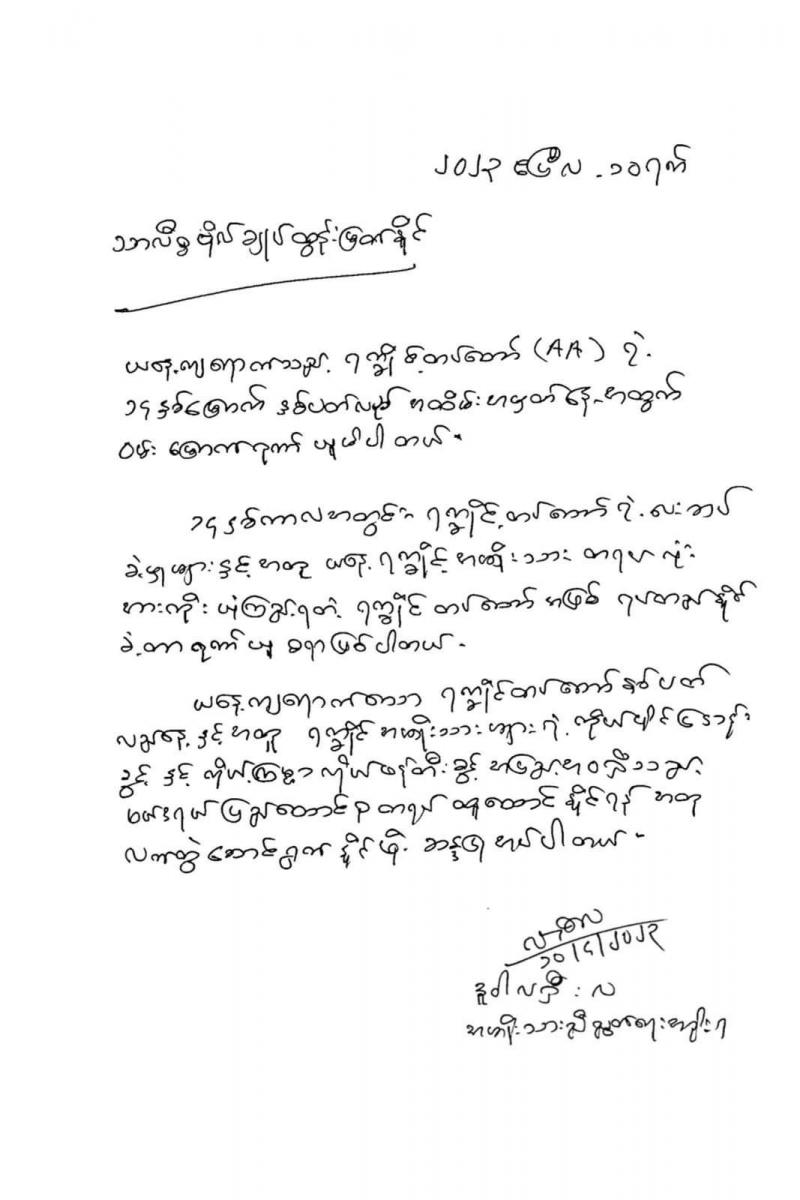 ယနေ့ ဧပြီလ ၁၀ ရက်တွင်ကျရောက်သည့် ရက္ခိုင့်တပ်တော်(AA)၏ ၁၄ နှစ်မြောက်နေ့အတွက် NUG ယာယီသမ္မတ ဒူဝါလရှီးလက တပ်မှူးချုပ် ဗိုလ်ချုပ်ထွန်းမြတ်နိုင်သို့ လိပ်မူ၍ ၄င်း၏ လက်ရေးမူဖြင့် လက်မှတ်ထိုးကာ ပေးပို့သောစာတွင် ထိုသို့ ဂုဏ်ယူကြောင်း ပြောဆိုထားခြင်းဖြစ်သည်။