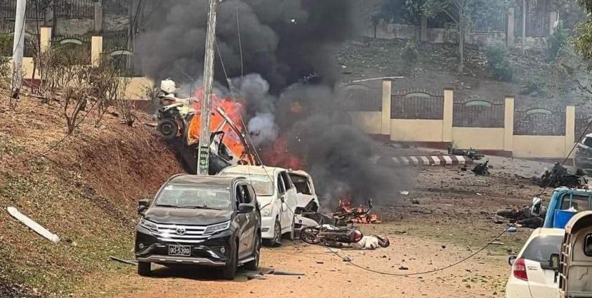 ဗုံးပေါက်ကွဲမှုကြောင့် လူသေဆုံး၊ ထိခိုက်ဒဏ်ရာရသည့်အပြင် ကား၊ ဆိုင်ကယ် ပျက်စီး ဆုံးရှုံးမှုများလည်း ရှိကြောင်း၊ လက်ရှိမှာ စစ်ကောင်စီ တပ်ဖွဲ့မှ လုံခြုံရေး စစ်ဆေးရေး တင်းကြပ်ထားကြောင်း သိရသည်။