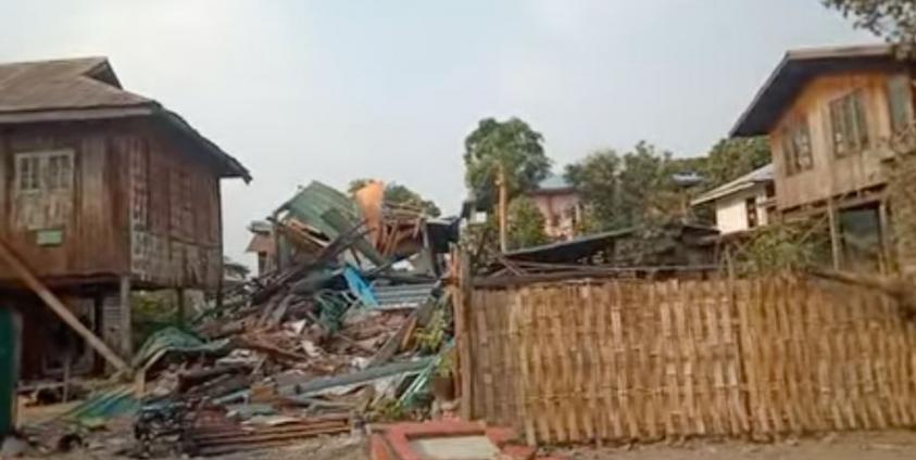 “အခု စစ်သားတွေဖျက်ဆီးလိုက်တဲ့ အိမ်က နံကပ် နှစ်ထပ်အိမ်ပေါ့နော်၊ အုတ်စီထားတဲ့အိမ်နော် ကြေမွသွားတာပဲ ယူစရာမရှိဘူး ဒါပေမဲ့ မီးဖိုချောင်ဘက်တော့ ၇ ပေ ၈ပေလောက်ရှိမလား အဲဟာတော့နဲနဲကျန်တယ် ပစ္စည်းတွေကိုလဲ ဘာမှ မသိမ်းခိုင်း မယူခိုင်းဘူး ဒီတိုင်းအိမ်ကိုဖြိုချပြီး ပြန်လှည့်သွားကြတယ်” လို့ မျက်မြင်တစ်ဦးက ပြောပါတယ်။