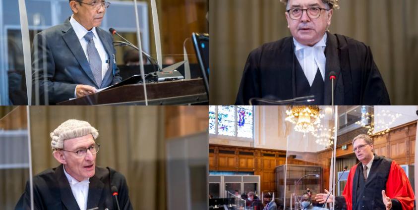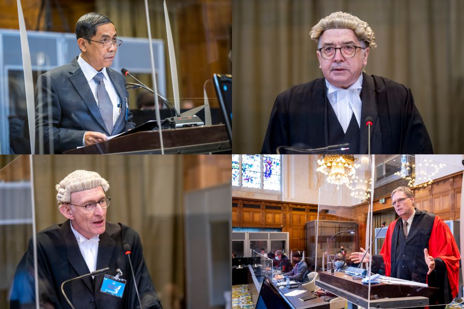 စတင်တရားစွဲဆိုခဲ့ချိန်က မြန်မာဘက်မှ နိုင်ငံတော်အတိုင်ပင်ခံပုဂ္ဂိုလ်ဟောင်း ဒေါ်အောင်ဆန်းစုကြည်ကိုယ်တိုင် နယ်သာလန်နိုင်ငံ၊ သဟိဂ်မြို့ရှိ ICJ တရားရုံးသို့ သွားရောက်တရားရင်ဆိုင်ခဲ့ရသေးသည်။