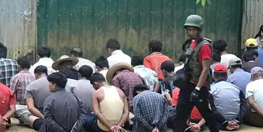 ဓါတ်ပုံ- ဖားကန့်မြို့နယ်အတွင်းက ပြည်သူများအား လူသားဒိုင်းအဖြစ် ဖမ်းဆီးခေါ်ဆောင်နေစဉ်။