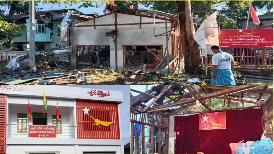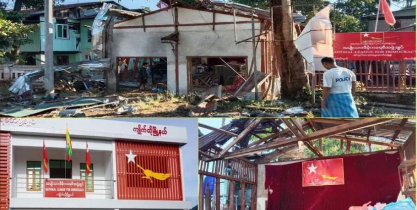စစ်တပ်အာဏာသိမ်းမှုဖြစ်ပွားတဲ့ ၂၀၂၁ ခုနှစ် ဖေဖော်ဝါရီကနေ အခုနှစ် ဧပြီအထိ NLD ပါတီရဲ့ ဗဟိုရုံးမှာ ၃ ကြိမ်၊ တိုင်းနဲ့ပြည်နယ်ရုံးတွေမှာ ၈ ကြိမ်၊ ခရိုင်ရုံးတွေမှာ ၅ ကြိမ်၊ မြို့နယ်ရုံးတွေမှာ ၆၆ ကြိမ်၊ ရပ်ကျေးရုံးတွေ မှာ ၂၀ ကြိမ်အထိ ဝင်ရောက်ဖျက်ဆီးခံရတာ ဖြစ်ပါတယ်။