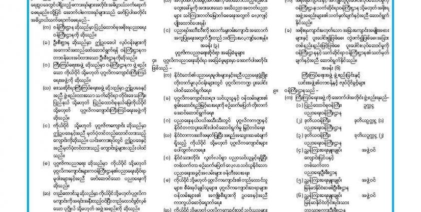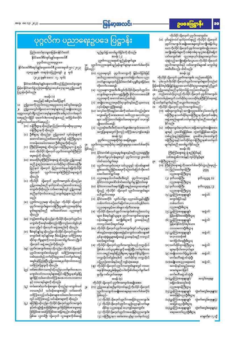 အခန်း ၁၆ ခန်း ပုဒ်မပေါင်း ၈၂ ခုပါဝင်တဲ့ စစ်ကောင်စီရဲ့ ပုဂ္ဂလိက ပညာရေးဥပဒေကို စစ်ခေါင်းဆောင် ဗိုလ်ချုပ် မှူးကြီး မင်းအောင်လှိုင်က မေ ၁၂ ရက်နေ့ ရက်စွဲနဲ့ လက်မှတ်ရေးထိုးပြီး ထုတ်ပြန်ပါတယ်။
