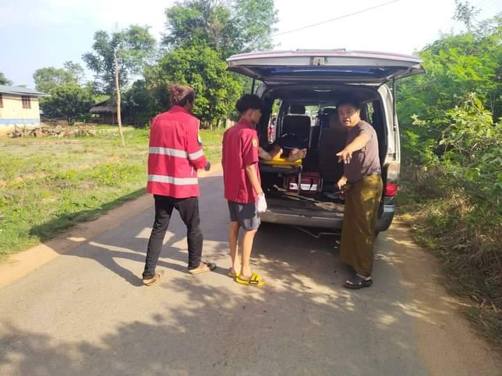 သေနတ်ဖြင့် ပစ်ခတ်ခံရမှုကြောင့် ၎င်းတို့ စီးလာသည့် ကာလးည်း ထိခိုက်ပျက်စီးသွားသည်ဟု သွားရောက် ကူညီပေးခဲ့သူများက ပြောသည်။