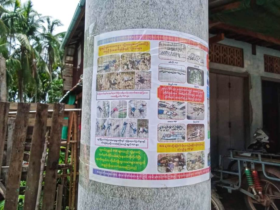 စစ်ကောင်စီ၏ ဝါဒဖြန့် စာရွက်များအား လမ်းသွားလမ်းလာများကို လက်ကမ်းဝေမျှနေသည့် အပြင် လူစည် ကားရာ နေရာများနှင့် လမ်းဘေးဓါတ်တိုင်များတွင် လိုက်လံကပ်ခဲ့ထားခဲ့ပြီးနောက် လိုက်လံ ဖြန့်ဝေနေသူများ သည် အနီးရှိ တပ်ရင်းအတွင်း ပြန်ဝင်ပြေးသွားသည်ဟု ဖေါ်ပြထားသည်။