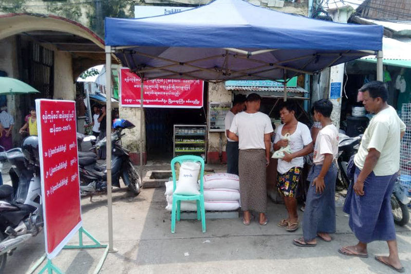 စစ်တွေတွင် ဆန်စပါးကုမ္ပဏီက ဆန်အိတ်များကို ဈေးနှုန်းသက်သာစွာဖြင့် ရောင်းချနေ