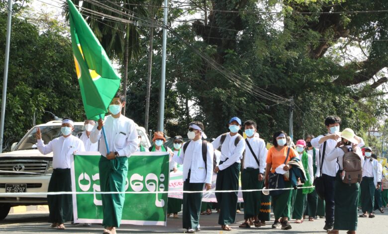 ဓါတ်ပုံ - မြစ်ကြီးနားတွင် စစ်တပ်အာဏာသိမ်းပြီး ၂၀၂၁ ခုနှစ် ဆရာ/မများနှင့် ကျောင်းသူ/သားများက ဆန္ဒပြ ထုတ်ဖော်
