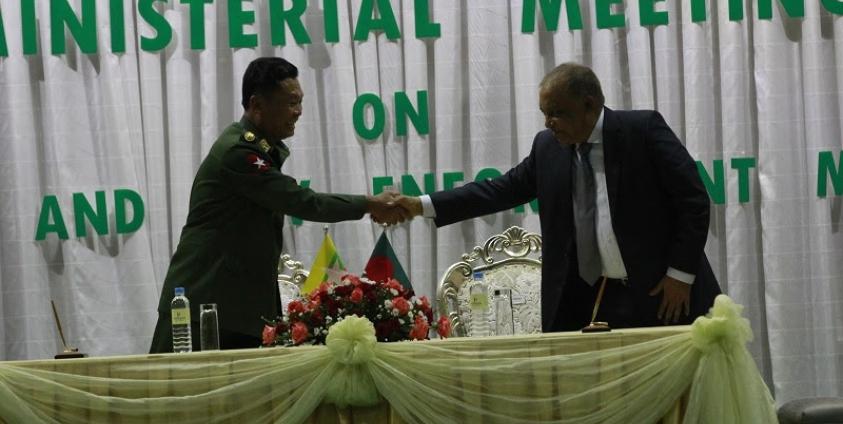 ရခိုင်ပြည်နယ်မှာ ပြီးခဲ့တဲ့ ဩဂုတ်လ ၂၅ရက်က စတင်ဖြစ်ပွားခဲ့တဲ့ ပဋိပက္ခတွေရဲ့ နောက်ဆက်တွဲအဖြစ် ဘင်္ဂလားဒေ့ရှ်နိုင်ငံ ပြည်ထဲရေးဝန်ကြီး ဦးဆောင်တဲ့ ကိုယ်စားလှယ်အဖွဲ့နဲ့ မြန်မာနိုင်ငံ ပြည်ထဲရေးဝန်ကြီးဦးဆောင်တဲ့ ကိုယ်စားလှယ်အဖွဲ့တို့ တွေ့ဆုံမှုအပြီး အခုလို ထုတ်ပြန်လိုက်တာလည်း ဖြစ်ပါတယ်။