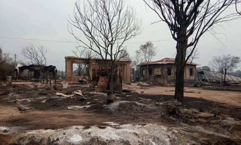 ဓာတ်ပုံ-ဇွန်လ၁၃ရက်နေ့က မီးရှို့ခံခဲ့ရသော စစ်ကိုင်းမြို့နယ် သာဇင်ကျေးရွာ