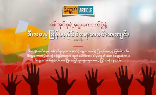 လာမယ့် နှစ်ကုန်ပိုင်းမှာ စတင်ကျင်းပသွားမယ့် အပိုင်းလိုက် အထွေထွေရွေးကောက်ပွဲကနေ အစိုးရတစ်ရပ် ပေါ်လာရင်လည်း တော်လှန်ရေးအင်အားစုတွေကို စစ်တပ်က...