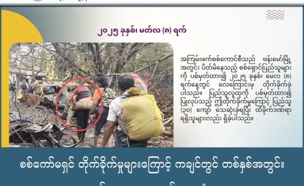 - ကေအဲန်ယူ၊ တပ်မဟာ-၇ ဌာနချုပ်နယ်မြေကို အာဏာသိမ်းစစ်တပ်က ဗုံးကြဲတိုက်ခိုက်နေတဲ့အချိန်မှာ အရပ်သားနေအိမ်တစ်လုံး မီးလောင်သွားတယ်ဆိုတာဟာ အမှန်မဟုတ်ဘဲ...