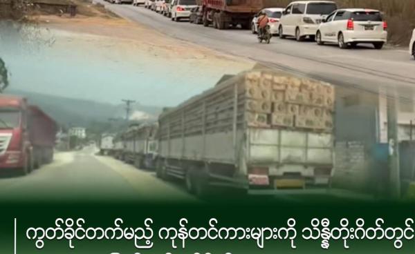 ကလော-သာစည် လမ်းပိုင်းရှိ စစ်ကော်မရှင် စစ်ဆေးရေးဂိတ်တွင် ရန်ကုန်မြို့မှ တောင်ကြီးမြို့သို့ တင်ပို့သည့် နိုင်ငံခြားကုန်ပစ္စည်းများကိုသိမ်းဆည်းမှုများ...