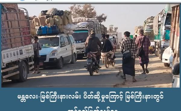 မန္တလေး-မြစ်ကြီးနားလမ်းပိုင်း ပိတ်ဆို့နေမှုကြောင့် မြစ်ကြီးနားတွင် ကြက်သားတစ်ပိဿာ ၄ သောင်းကျပ်အထိ စံချိန်တင်ဈေးတက်နေပြီး အခြေခံစားသောက်ကုန်များပါ...