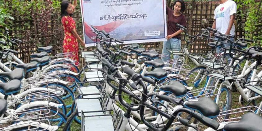 ရခိုင်ပြည်နယ်၊ မြို့နယ် ၁၇ မြို့နယ်မှ လမ်းပန်းဆက်သွယ်ရေး ခက်ခဲစွာဖြင့် ကျောင်းတက်နေရသည့် ကျောင်းသား/ကျောင်းသူများအတွက် We Love Rakhine အဖွဲ့မှ ဂျပန်နိုင်ငံထုတ် စက်ဘီးအစီး ၃၀၀ ကို လှူဒါန်းပေးခဲ့ကြောင်း သိရသည်။