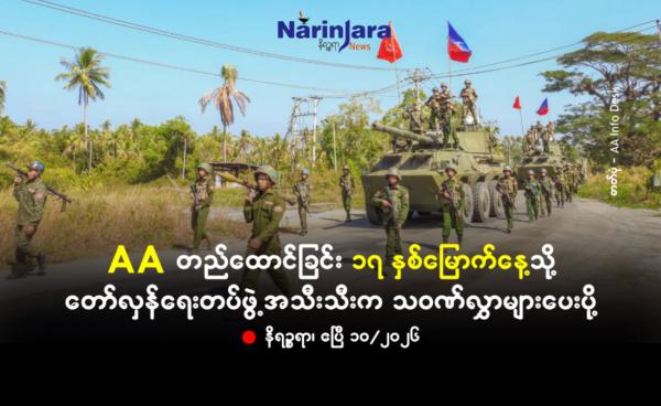 ကျော်သီဟ — ဧပြီလ ၁ဝ ရက်တွင်ကျရောက်သည့် အာရက္ခတပ်တော် (AA) တည်ထောင်ခြင်း (၁၇) နှစ်မြောက်နေ့သို့ တော်လှန်ရေးတပ်ဖွဲ့အသီးသီးက သဝဏ်လွှာများကိုယ်စီ...